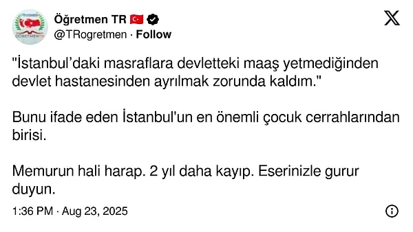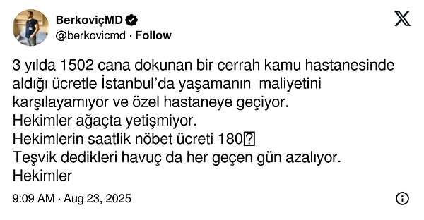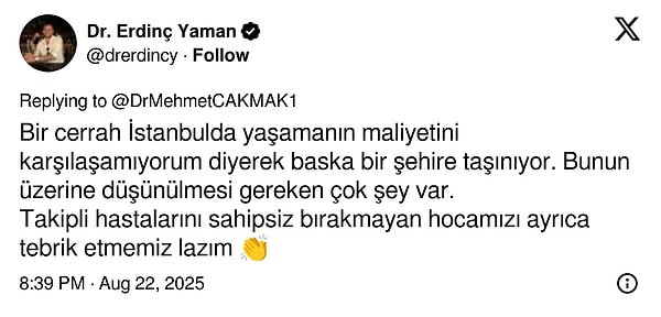 ‘Bir cerrah İstanbul’da yaşamanın maliyetini karşılaşamıyorum diyerek öbür bir şehire taşınıyor. Bunun üzerine düşünülmesi gereken çok şey var.