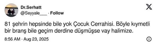 ‘81 kentin hepsinde bile yok Çocuk Cerrahisi. Bu türlü değerli bir branş bile geçim kaygısına düşmüşse vay halimize.’