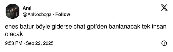 Ancak Enes Batur’un gündem yaratan davranışları bununla sonlu kalmadı.