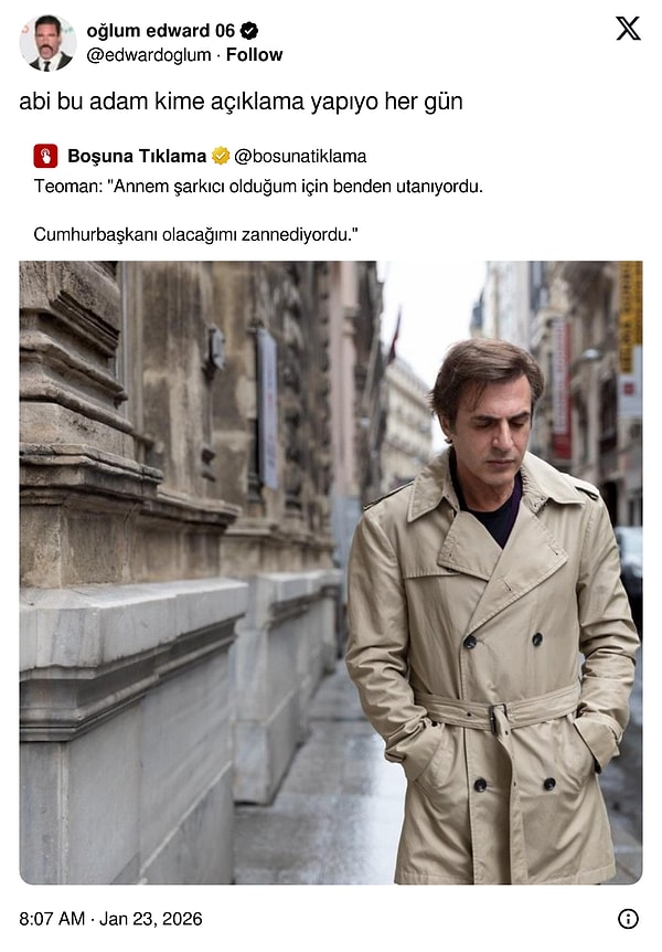 Haftanın son gününe geldik. Her gün olduğu gibi yine bugünü de günün en çok dikkat çeken tweetleri ile kapatıyoruz. X’in mizah ustaları, güçleriyle bugün de X’in gündemini şekillendirdi. Bakalım, pazar günü hangi kullanıcıların tweetleri kahkahaları tetikledi, hangileri ağır beğeni alarak viral hale geldi.