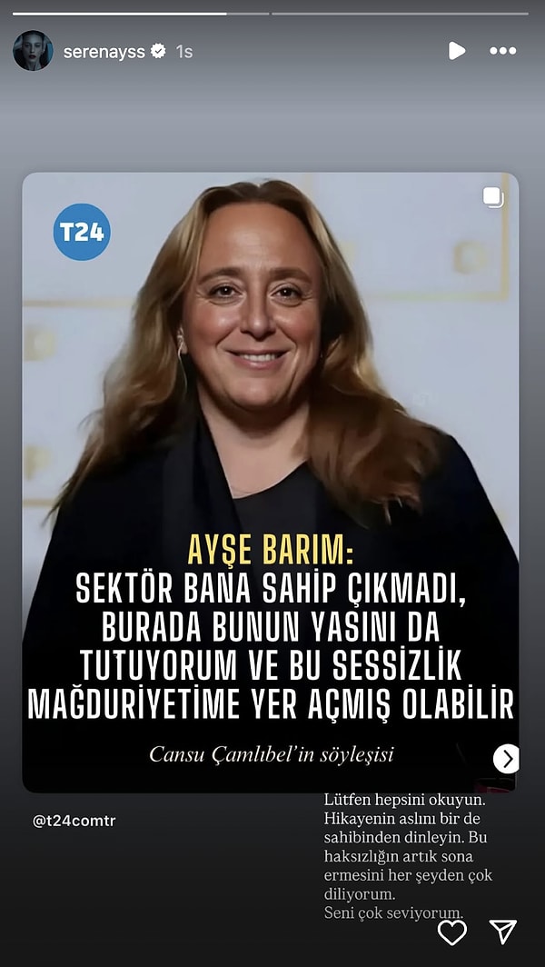 “Lütfen hepsini okuyun. Kıssanın aslını bir de sahibinden dinleyin. Bu haksızlığın artık sona ermesini her şeyden çok diliyorum. Seni çok seviyorum.” Bu çıkış toplumsal medyada büyük yankı uyandırdı.