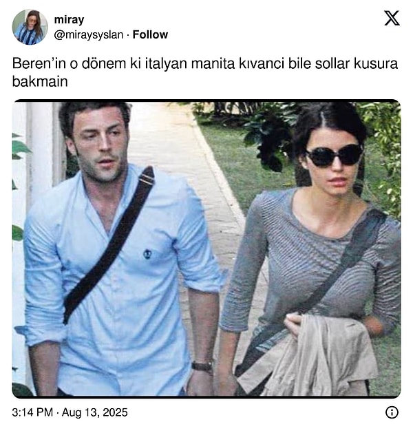 Altına yapılan “Beren ve Kıvanç’ın birbirine aşık olması gerekiyordu” yorumu, bir X kullanıcısının aklına Beren Saat’in eski sevgilisini getirdi. Ve bir anda ortalığa güzelliğiyle dikkat çeken, İtalyan olduğu argüman edilen o eski sevgilinin fotoğrafı düştü. Gelin ayrıntılara birlikte bakalım!