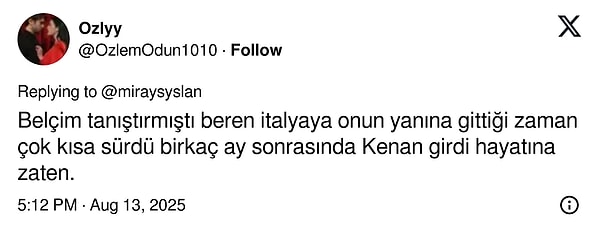 Diziden paylaşılan bir kesite “Beren ve Kıvanç’ın birbirine aşık olması gerekiyordu” formunda yapılan yorumun üzerine bir X kullanıcısı Beren Saat’in eski sevgilisini paylaştı.