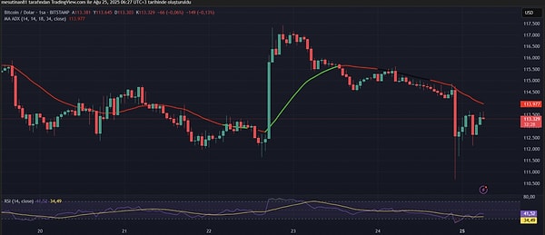 Bitcoin 25 Ağustos saat 08.00 prestijiyle 112 bin dolar (yaklaşık 4 milyon 611 TL) düzeylerinde süreç görüyor.