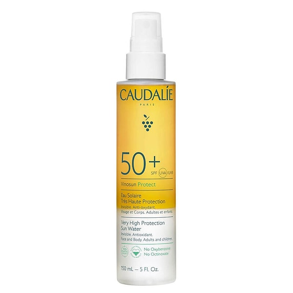 Yazın hem güneşten etkilenmemek hem de ferah kalmak isteyenler için Caudalie Vinosun Protect birebir! Su bazlı hafif yapısıyla cildinde iz ya da yapışkanlık bırakmadan anında ferahlık veren su, SPF 50 faktörü sayesinde UVA ve UVB ışınlarına karşı güçlü bir kalkan oluşturuyor. Üstelik hem yüz hem bedende kullanabileceğin sprey, sıcak günlerde güneşin tadını çıkarırken seni taze hissettiriyor.