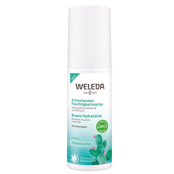 Sıcak günlerde anında serinlik ve tazelik isteyenler için Weleda Nemlendirici Yüz Spreyi olmazsa olmaz! Organik aloe vera, dikenli armut özü ve esansiyel yağlarla güçlü formülü cildini nemlendirirken bir yandan da besliyor. Hafif yapısı sayesinde gün içinde istediğin an yüzüne, boynuna ya da dekolte bölgesine uygulayabileceğin sprey, ferahlık, doğallık ve nemi tek şişede birleştiriyor.