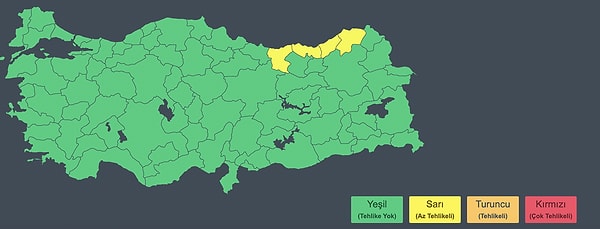 Havada potansiyel tehlike olduğunu gösteriyor. Beklenen hadise olağandışı değil lakin; dikkatli davranılmalı.