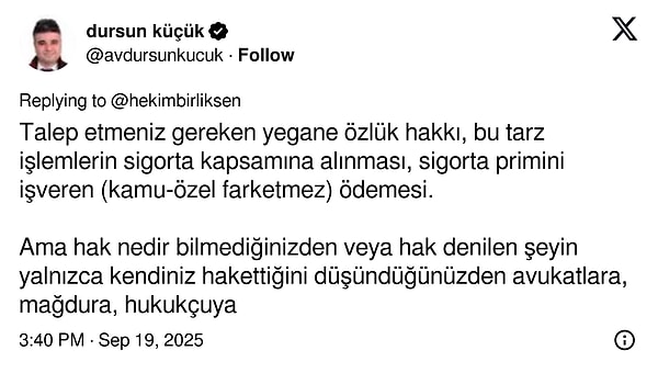 ‘Talep etmeniz gereken yegane özlük hakkı, bu üslup süreçlerin sigorta kapsamına alınması, sigorta primini patron (kamu-özel farketmez) ödemesi.