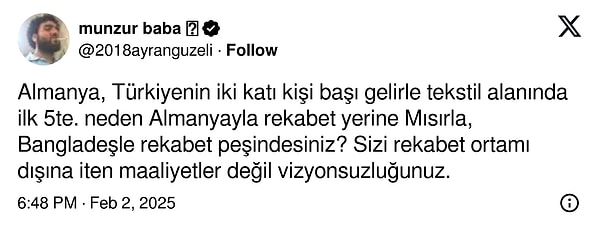 Ege İhracatçı Birlikleri (EİB) Koordinatör Başkanı Jak Eskinazi’nin, Türkiye’deki dokuma dalının rekabet gücüne dair yaptığı açıklamalar reaksiyon çekti. Eskinazi, Türkiye’de kişi başına yıllık iş gücü maliyetinin 15 bin doları bulduğunu belirterek, “Rakiplerimiz 100-300 dolar ortasında aylık fiyat verirken, biz onlarla rekabet edemeyiz” tabirlerini kullandı. Eskinazi’nin ‘ucuz personellik önerisi’ toplumsal medyada infial yarattı.