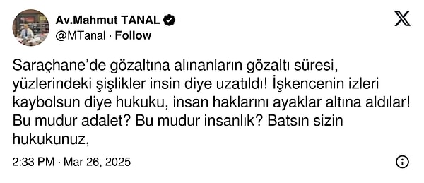 CHP Milletvekili Mahmut Tanal ise gözaltı müddetinin uzatılmasının münasebeti olarak polis şiddetini göstermişti.