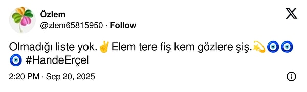 Güzel oyuncumuz Hande Erçel ise listenin 6. sırasında kendine yer buldu.