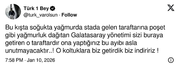 Galatasaray taraftarı dağıtılan yağmurlukların kalitesinden şikayetçiydi.