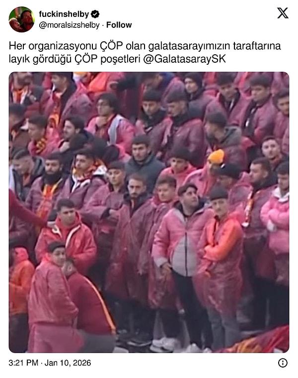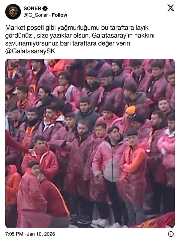 Ancak Galatasaray taraftarı dağıtılan yağmurlukların kalitesine reaksiyon gösterdi.