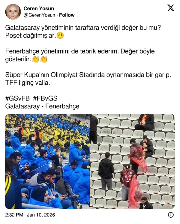 Fenerbahçe idaresinin daha kaliteli yağmurluk dağıttığını argüman eden taraftarlar, kendi idarelerini toplumsal medyada tenkit yağmuruna tuttular.
