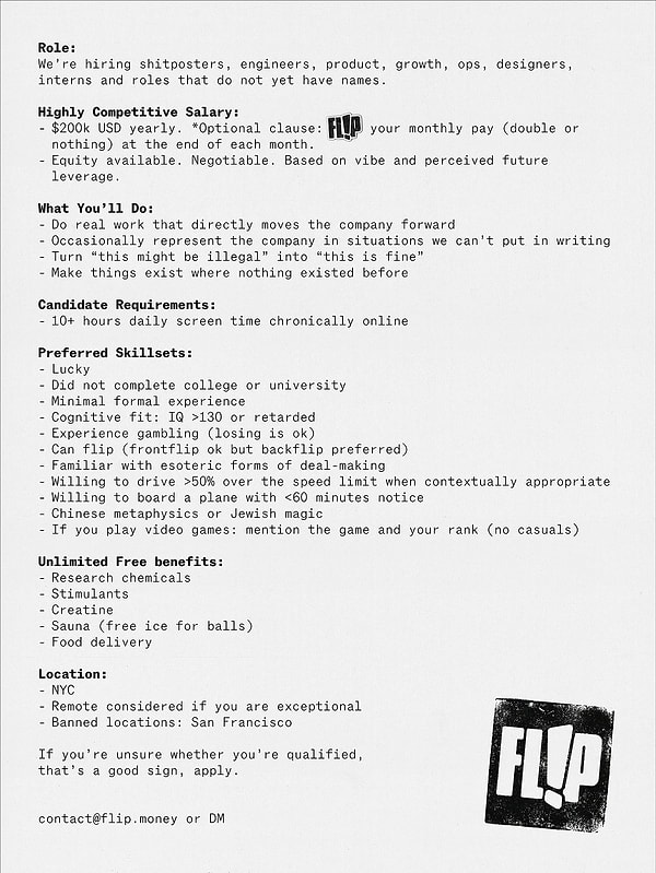 Flip isimli finansal teknoloji şirketi, yayımladığı sıra dışı iş ilanıyla alışılmış işe alım anlayışının dışına çıktı. Endonezya merkezli ödeme platformu, ilana gelen müracaatların yaklaşık yarısını hiçbir kıymetlendirme yapmadan sistemden sildi.