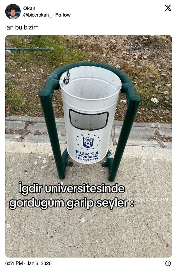 Ancak toplumsal medyada paylaşılan bir teze nazaran Iğdır Üniversitesi Yerleşkesi bu hususta çıtayı hayli yükseltmiş durumda. Yerleşkede yer alan pek çok eşyanın farklı kentlerden getirildiği öne sürülürken, ortaya çıkan tablo “burası yerleşke mü, belediyeler ortası ikinci el pazarı mı?” yorumlarını da beraberinde getirdi.