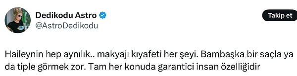 Magazin dünyasına Justin Bieber ile damga vuran isimlerden olan Hailey Bieber’ın daima tıpkı tipte karşımıza çıktığını sizler de fark etmişsinizdir. Dünyaca ünlü hoş modelin küt saçları, pak görünümlü hafif makyajı hiçbir vakit değişmiyor. @astrodedikodu isimli tanınan Twitter sayfası da bu hususa değinmesiyle etkileşimlerin odağı oldu. Gelin bir de birlikte bakalım!