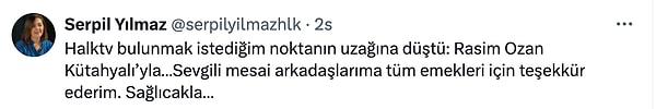 Rasim Ozan Kütahyalı’nın Halk TV’ye çıkmasından rahatsız kolan isimlerden müellif Serpil Yılmaz toplumsal medya hesabından istifa ettiğini açıkladı.