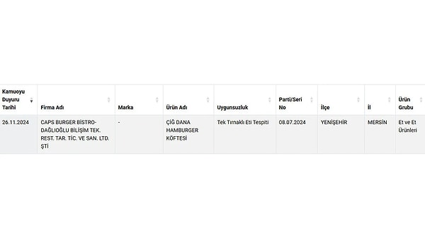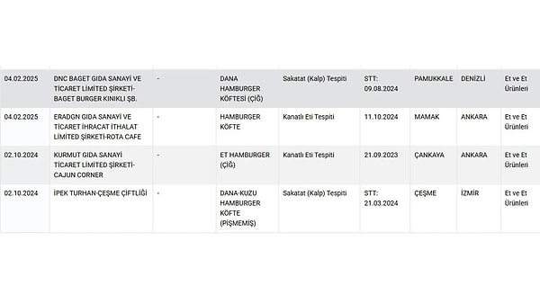 ‘Taklit yahut Tağşiş Yapılan Gıdalar’ ve ‘Sağlığı Tehlikeye Düşürecek Gıdalar’ listelerinde bulunan restoranlar ifşa edildi. Birçok restoranın hamburgerinde uygunsuzluk tespit edildi.