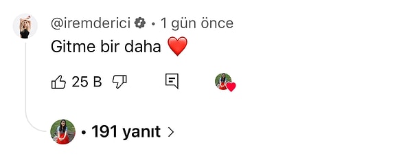 Ünlü popçu İrem Derici de görüntüye yorum yazdı.