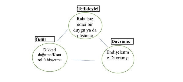 Öğrenme ve alışkanlık sürecinde beynimiz ödül temelli öğrenme sistemini kullanır. Korku döngüsüne baktığımızda; rahatsız edici bir his ya da niyet, telaşlı fikirleri tetikler. Biz de süreksiz bir rahatlama sağlayan dikkati dağıtma durumunu ödül olarak kullanırız. Kısa müddetliğine denetim hissi oluşur. Fakat bir müddet sonra kendimizi tekrar tetikleyiciye dönülen bir sistemin içinde buluruz.