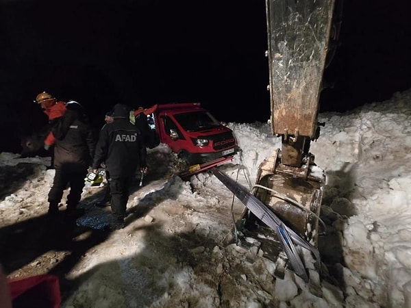 Çığ nedeniyle kapanan yolun ulaşıma açılması için çalışmalar aralıksız sürüyor.
