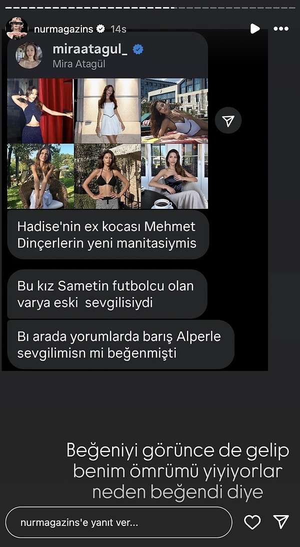 Sosyal medyada daha evvel Samet Akaydın ile ismi geçen, hatta kimi takipçilerin futbolcu Barış Alper ile ilgili yorumlarını beğendiği konuşulan Mira Atagül, şimdilerde Dinçerler ile anılmaya başladı.