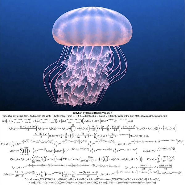 Yeganeh’in çalışmaları, klasik çizim tekniklerinin çok ötesinde bir kağıda kalem sürmek yerine, bilgisayar ekranında formüllerin gücünü kullanıyor. Sanatçı, binlerce denklemi bir ortaya getirerek kuşlar, balıklar ve çiçekler üzere organik formlar üretirken, aslında tabiatın kendi içindeki matematiksel tertibi taklit ediyor.