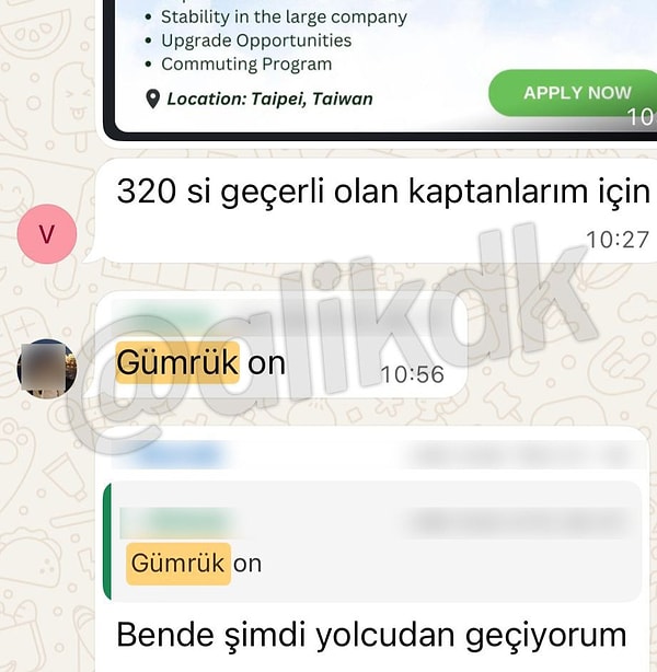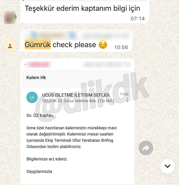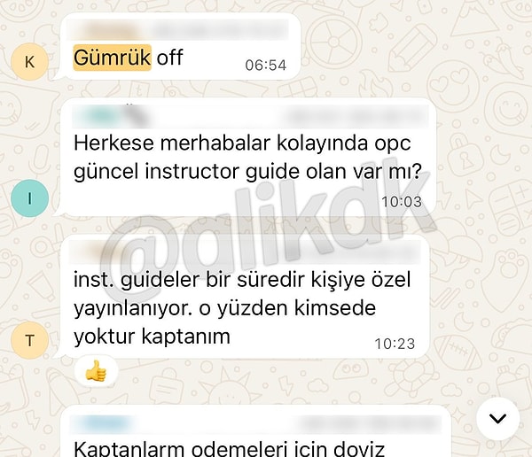 AirportHaber’den Ali Kıdık’ın toplumsal medyadan paylaştığı yazışmalara nazaran; pilotlar kendi ortalarında “Gümrük” kümesi kurmuş! Pilotlar kümede birbirine “gümrük memuru yerinde mi” üzere sorular soruyor. Kimi pilotların yurt dışından gelirken yanlarında getirdikleri eşyaların gümrüğe takılmadan yurda girmesini sağlamaya çalıştıkları tez edildi.