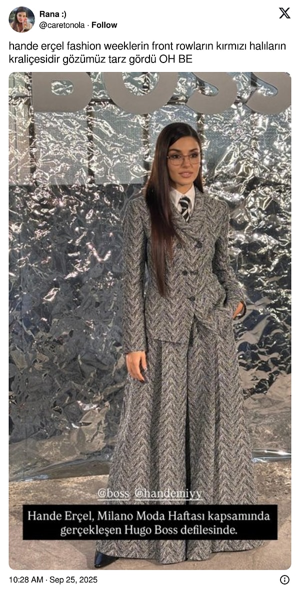 İddialı bir Hugo Boss grubu giyen Hande Erçel’in alışık olduğumuzdan daha farklı, daha Kore havasında bir usule bürünmesi dikkat çekti.