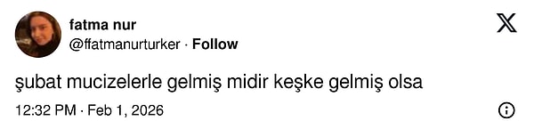 Her ay başında toplumsal medyada ‘mucizelerle gel…’ paylaşımları yapılıyor. Mucizelerle gel kasım, aralık, ocak…Tabii sıra Şubat’a geldi. Ocak ayının oldukça uzun sürmesinden sonra Şubat’ı iple çekenler hoş dileklerde bulunmayı da ihmal etmedi.