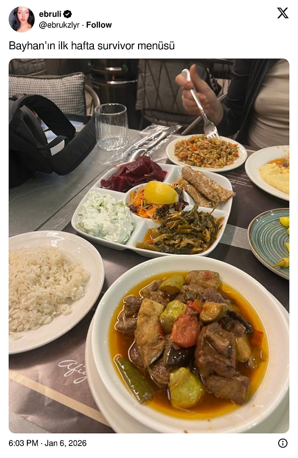 Survivor 2026 döneminin en sürpriz yarışmacısı hiç elbet Ünlüler ekibindeki Bayhan oldu. Yarışlardaki performansı çok güzel olan Bayhan ayrıyeten ada hayatında pilav pişirme vazifesini de üstlendi. Kendine has üslubuyla şimdiden en sevilen yarışmacıların başında gelen Bayhan’a gelen yorumları sizler için derledik.