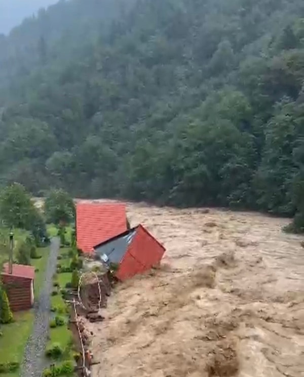 Rize’ye 24 saatte 75 kilogram ve üstü yağış düştü. Meteorolojinin sarı kodlu ihtar verdiği kentte, sağanak yağış sele dönüştü. Dereler taştı, heyelan oldu, 4 kişilik bir aile araçlarının sel sularına kapılmasıyla vefattan kıl hissesi kurtuldu. Bir işletmede bungalovların sel sularına kapıldığı anlar kameralara yansıdı.