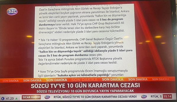 RTÜK, Sözcü TV’ye 10 gün ekran karartma cezası verdi.