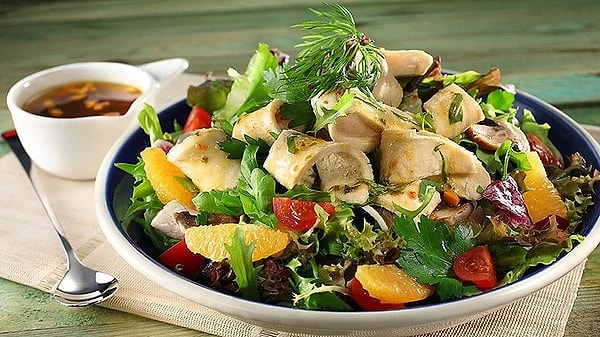Yaz aylarının serinleten tatlarından biri olan kavun, tavuk salatası ile birleşerek sağlıklı ve ferah bir yemek oluşturuyor. Yanında kızarmış kinoayla, hem besleyici hem de doyurucu bir öğün elde ediyorsunuz.