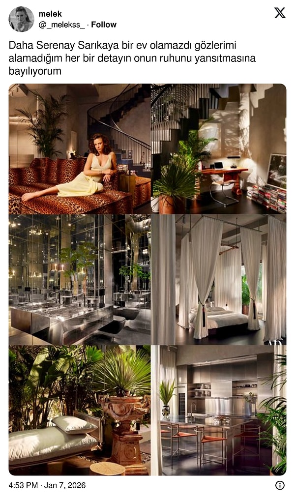 Bazı toplumsal medya kullanıcıları “Tam bir yıldız konutu, Serenay’a çok yakışmış” derken, kimileri da “Otel üzere, konut sıcaklığı yok” yorumları yaptı.