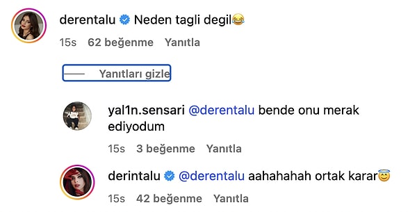 Ablası Deren Talu’nun neden etiketli olmadığını sorduğu sevgilisi için Derin Talu “Ortak karar” demişti.
