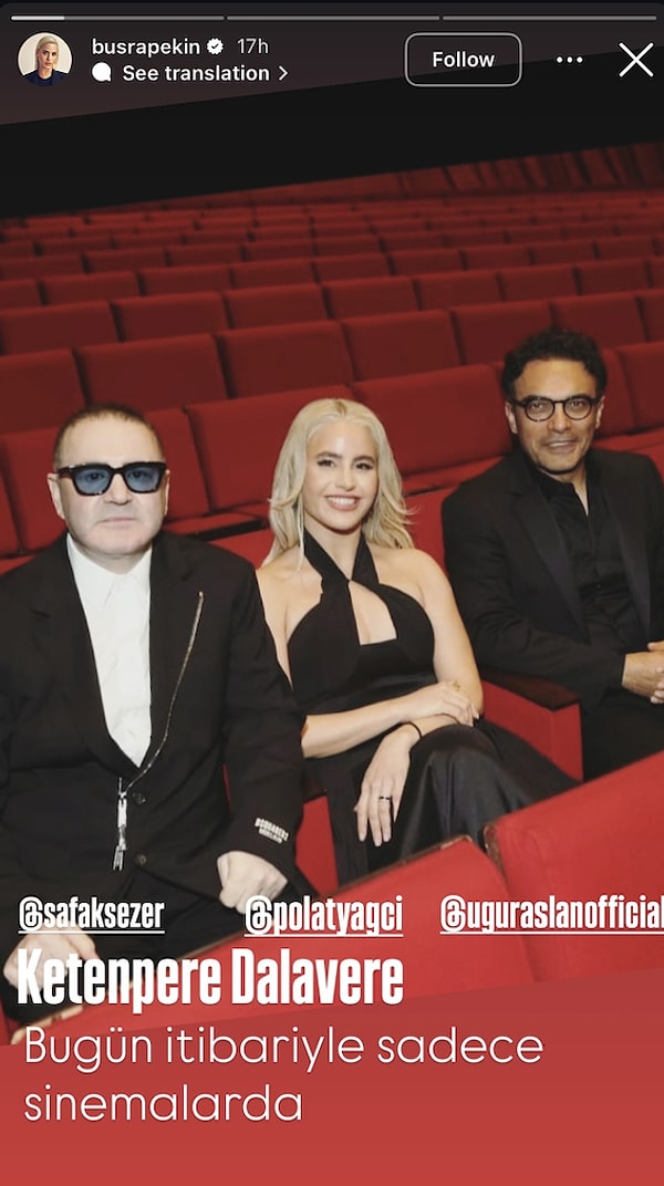 Büşra Pekin, yeni sineması “Ketenpere Dalavere”nin galasından fotoğraf paylaştı. Yanında sinemanın başrolü Şafak Sezer’le poz veren Büşra, platin saçları ve değişen yüz çizgileriyle “tanınmayacak halde” yorumlarını yine alevlendirdi.