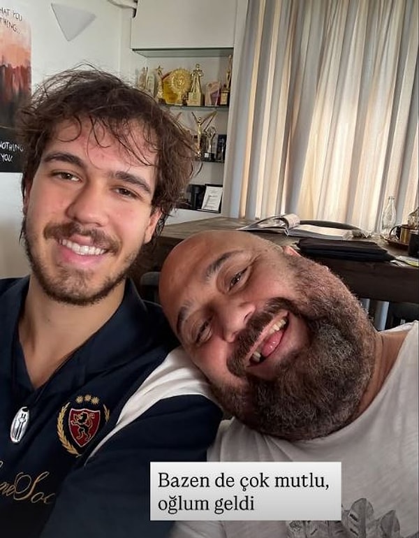 Sivrioğlu, oğluyla hasret giderdiği anlara, “Bazen de çok memnun, oğlum geldi” notunu düştü.