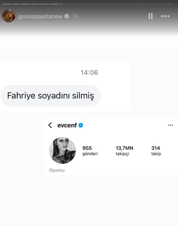 Instagram hesabında yaklaşık 14 milyon takipçisi bulunan Evcen’in profilinden Fahriye Evcen Özçivit ismini kaldırması kısa müddette dikkatli toplumsal medya kullanıcılarının radarına takıldı.