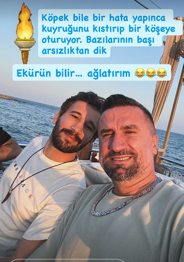 Adem’e takviye olan Hikmet onunla fotoğrafını paylaşarak “Köpek bile bir kusur yapınca kuyruğunu kıstırıp bir köşeye oturuyor” yazdı.