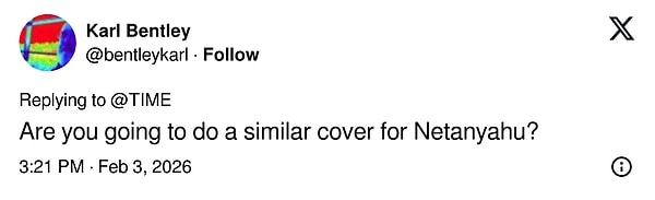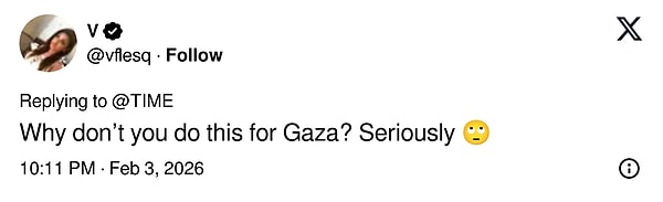 Öte yandan X kullanıcıları Epstein skandalını gündeme getirmediği gerekçesiyle Time mecmuasına reaksiyon gösterdi👇🏻