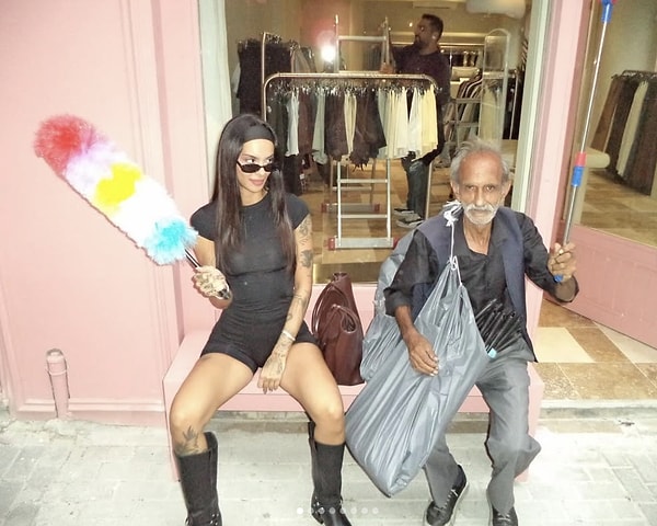 ‘Hayatımda yediğim en saçma duyardı her şeyden evvel. Biz orada fotoğraf çekilirken abi geldi, yanımıza oturdu, sohbet etik ve fotoğraf çekildik. Çok tatlı bi andı, paylaştım. Kimseyi aşağıladığımız yok, abi evsiz falan da değil seyyar. O yakıştırmayı yapan da sizsiniz. Çok saçma lakin işte herkes açık arıyor. İsteyen istediğini düşünmekte özgür, benim içim, vicdanım çokkk rahat!’ sözlerini kullandı.