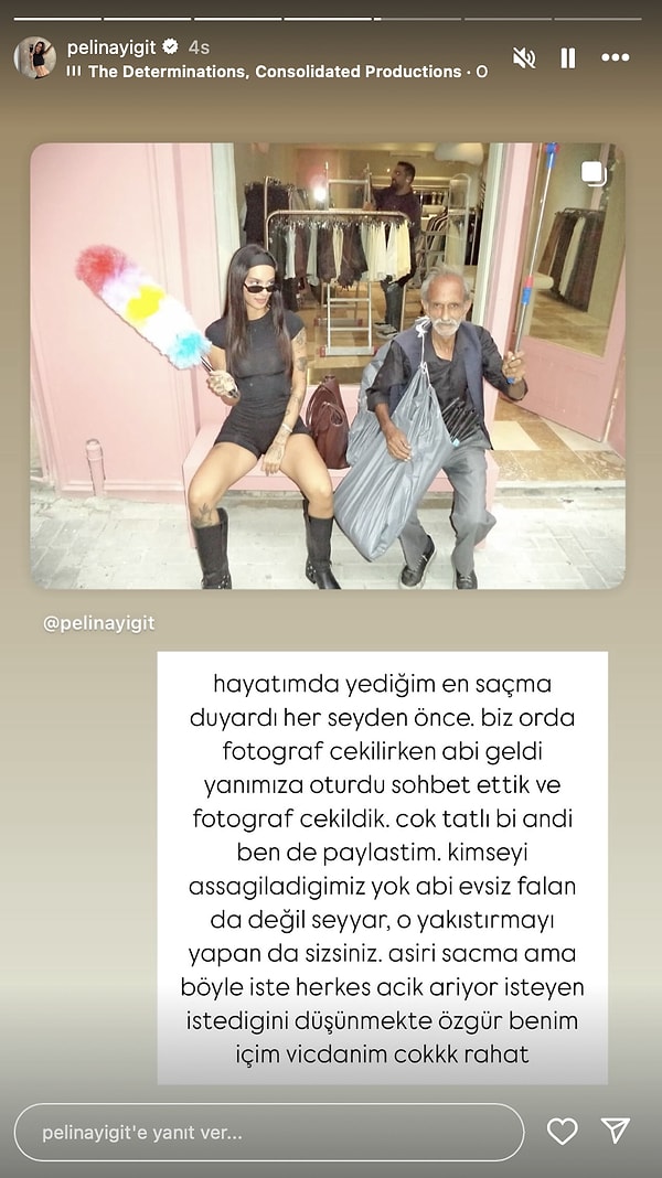 Bir X hesabının, ‘Yeni moda da Instagram influencerlarının sokakta gördükleri fakir ya da homeless şahısları kendi bok üzere içeriklerine meze olarak kullanması mı? Hem de paklık materyalleriyle? Allah akıl fikir versin.” yorumu haklı bulunmuş, Pelinay İgit topa tutulmuştu.