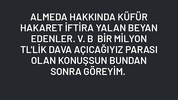 Sağlık durumuyla ilgili yaptığı paylaşımların akabinde Almeda’dan epey önemli ve öfkeli bir paylaşım geldi.