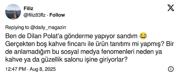Özlem Öz uzun vakittir tanıtımını yaptığı kahve için yeniden bir görüntü çekti. Görüntüde boş bardak kullandığı görüldü. O anlar toplumsal medyanın lisanına düştü.