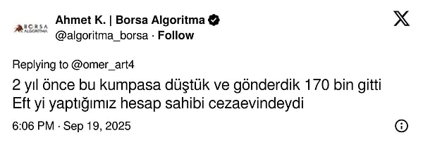 Kullanıcının paylaştığı ekran manzarasında bir kişi hesabına bloke geldiğini söyleyerek IBAN atarak borç istiyor. Lakin X kullanıcısı bu bildiri üzerine şüphelenip durumun dolandırıcılık olduğunu anlıyor.