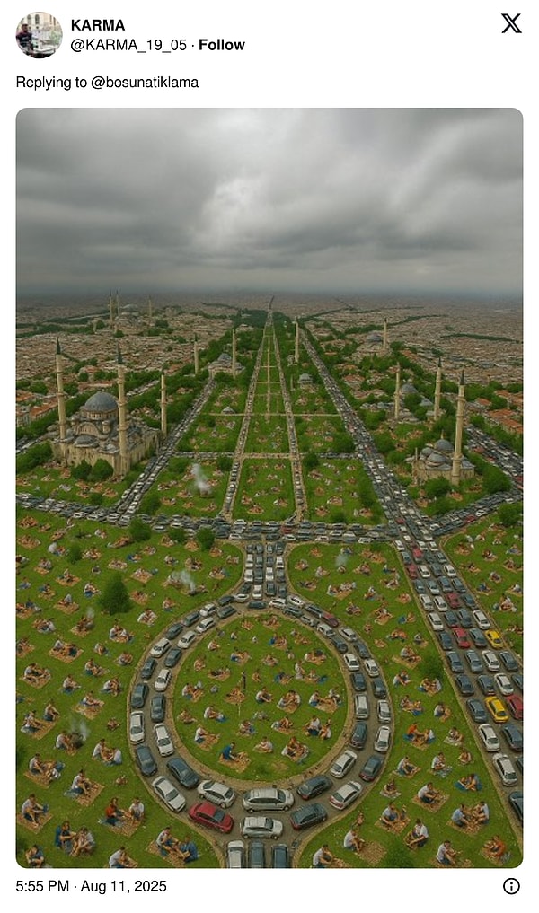 2024 yılı TÜİK’in Adrese Dayalı Nüfus Kayıt Sistemi (ADNKS) sonuçlarına nazaran, Türkiye nüfusunun yaklaşık yüzde 18,3’üne konut sahipliği yapan bu kalabalık kentin yapay zeka tarafından oluşturulan yemyeşil manzarası ise görenleri kendine hayran bıraktı.