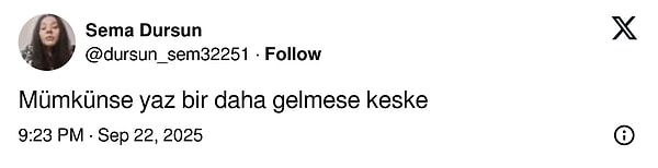 X’te paylaşılan “yaz mevsimi sona erdi” haberlerine kullanıcılardan da güldüren yorumlar geldi.