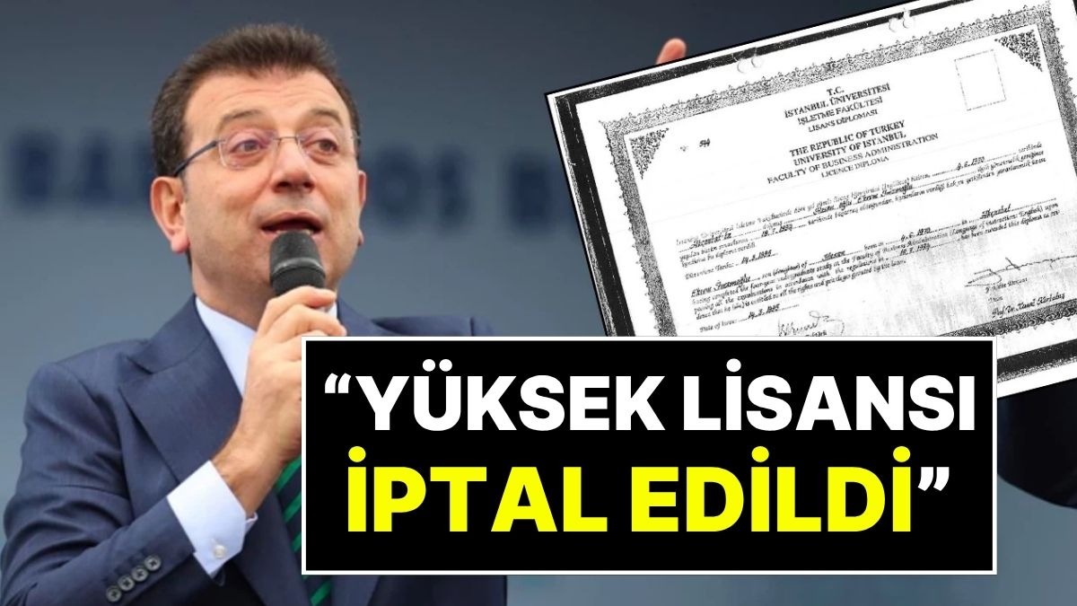 İddiaya nazaran; İstanbul Üniversitesi Sosyal Bilimler Enstitüsü Müdürlüğü, İmamoğlu’nun, “lisans mezuniyet” şartının sağlanamadığından bahisle “yüksek lisans mezuniyetinin ve diplomasının geçersiz sayılmasına” karar verdi.